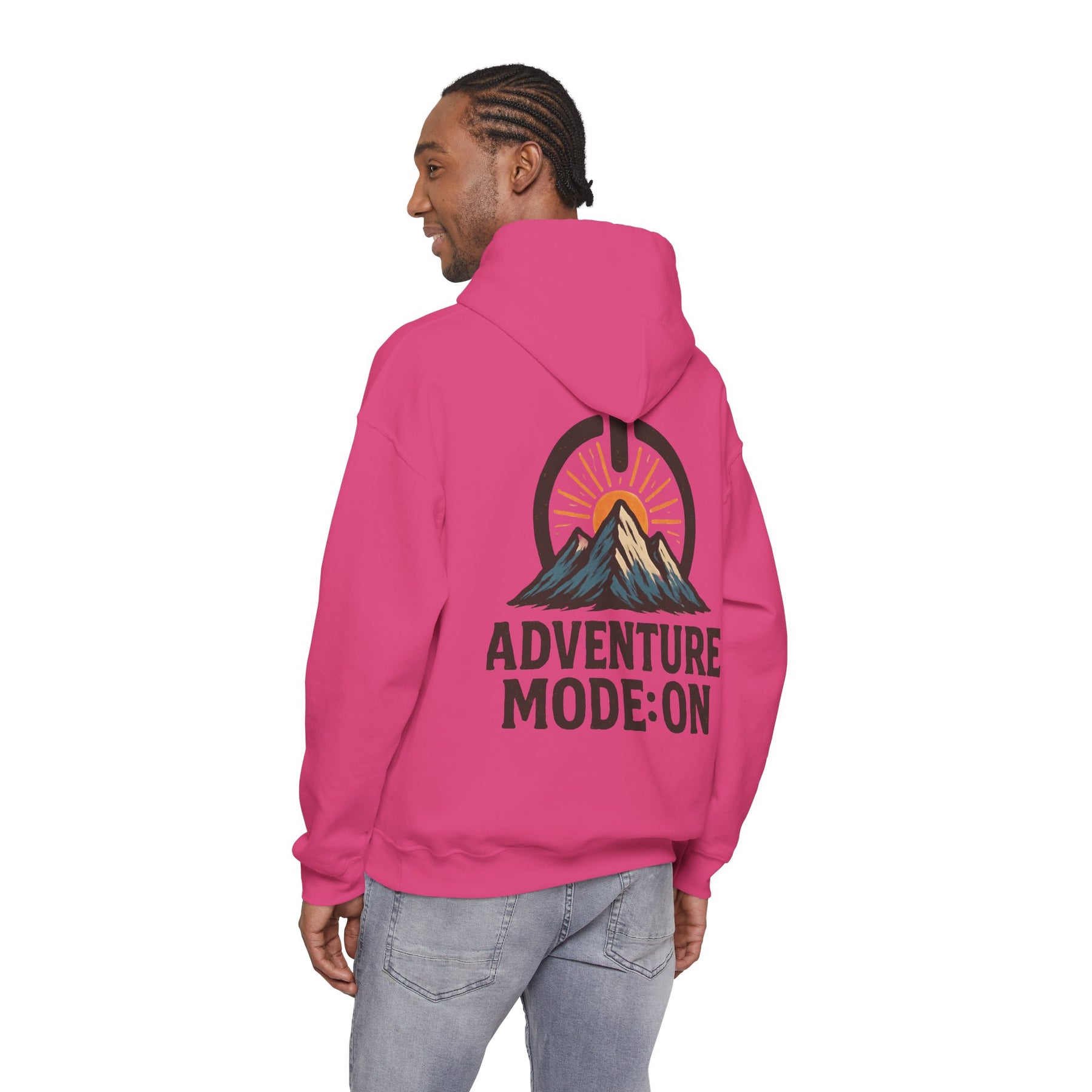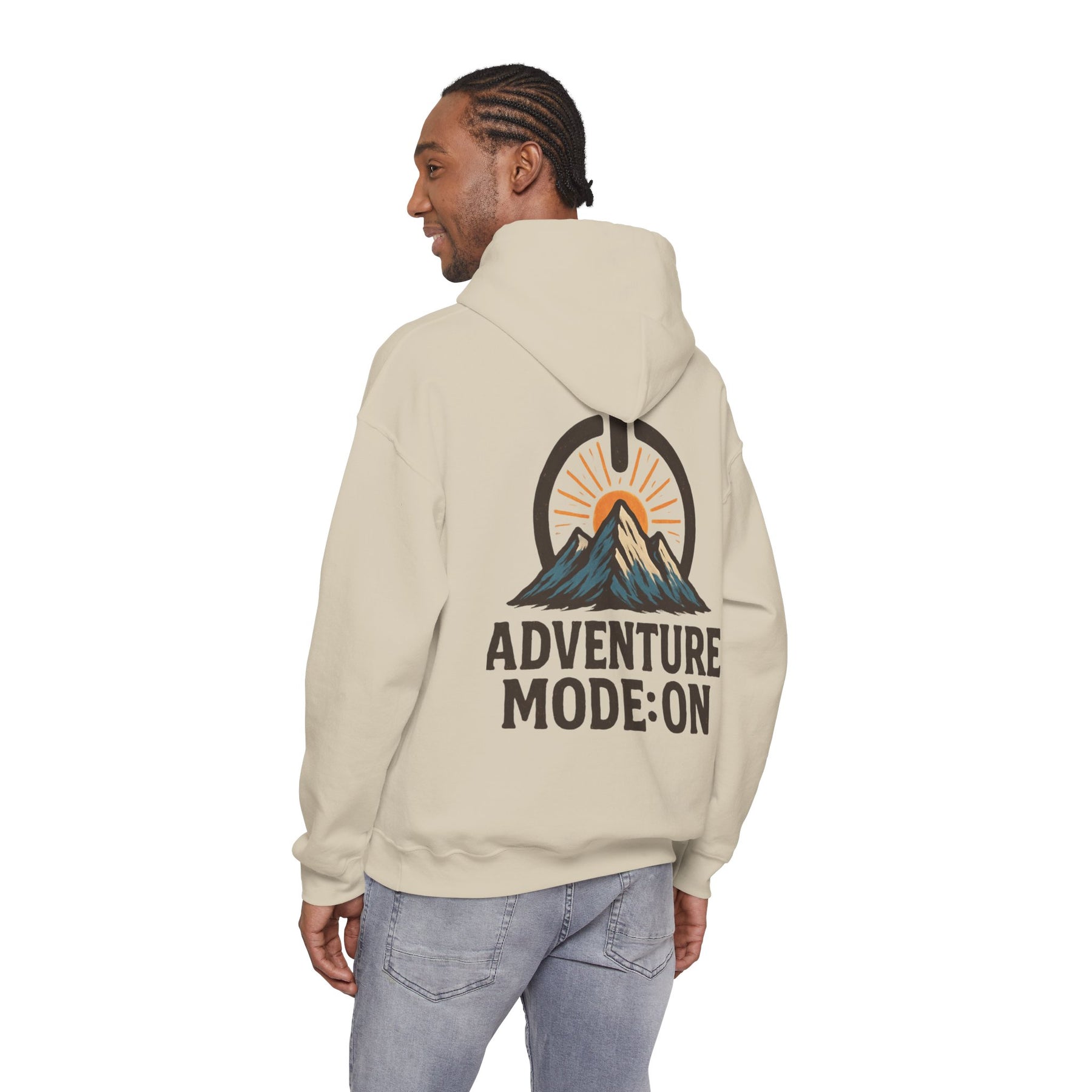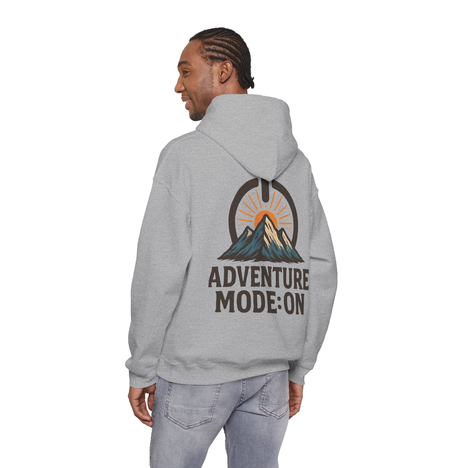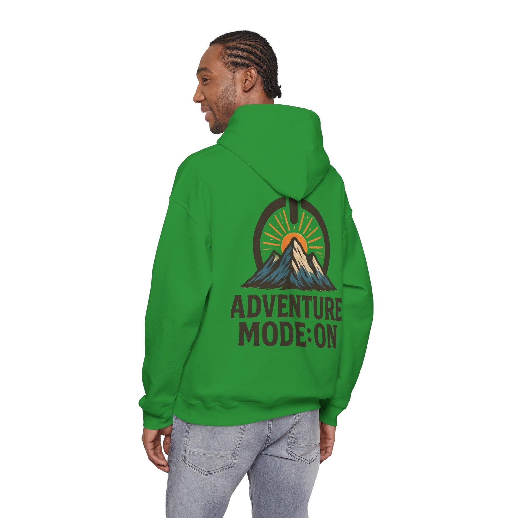 This roomy, mid-weight hoodie brings that first-sip-of-coffee morning-on-the-trail energy to everyday life. Soft, brushed interior and a roomy kangaroo pocket keep hands warm after sunrise hikes or late-night campfire talks. The front and back graphics — a rising sun behind rugged peaks and the bold line “ADVENTURE MODE: ON” — speak to people who chase trailheads, weekend drives, and spontaneous road trips. Wear it to warm up at the trailhead, throw it over a tee after a day of exploring, or keep one in the car for dawn patrols. It’s comfortable, durable, and made to move with you when the path calls.