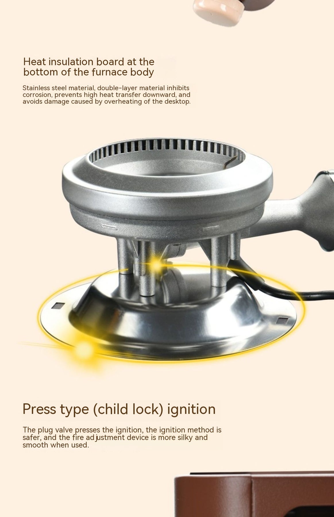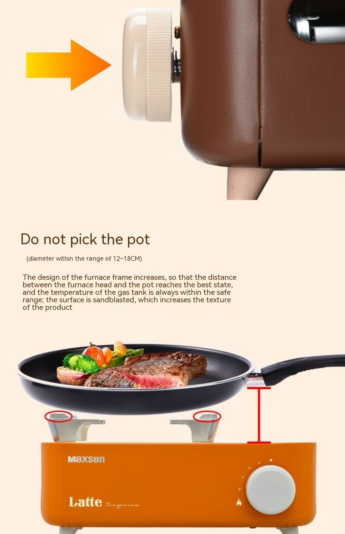 Equipped with an easy-to-use ignition system, the Portable Gas Stove ensures hassle-free operation—no matches or lighters required. Its durable design and stable support make it safe for all kinds of cookware, while the adjustable flame control allows you to simmer or boil with precision.