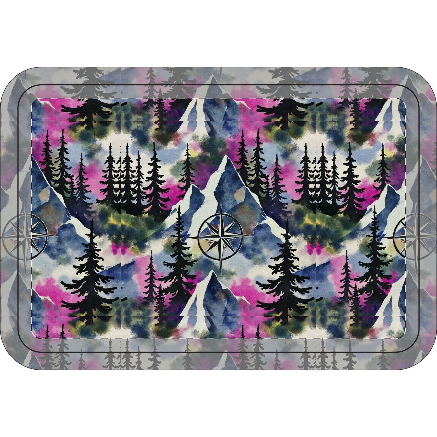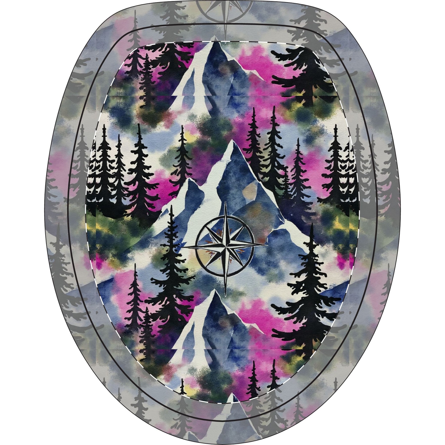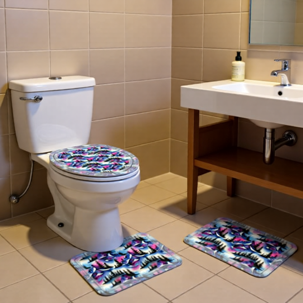 Bring a cozy, lodge-inspired touch to the bathroom with this three-piece flannel set. The soft, brushed surface has a warm, tactile feel underfoot and on the seat, while the high-density, eco-friendly sponge core absorbs moisture and keeps surfaces feeling dry. A calming mountain-and-pine design in dusk tones—soft pinks, indigo and slate—adds a quiet, woodsy mood that suits rustic cabins and modern homes alike. Dot-molded, non-slip backing keeps each piece firmly in place, protecting floors and preventing slips. Use the square floor mat to frame the base, the U-shaped piece where you step, and the fitted seat cover for a coordinated, comfortable experience every time you enter the room.