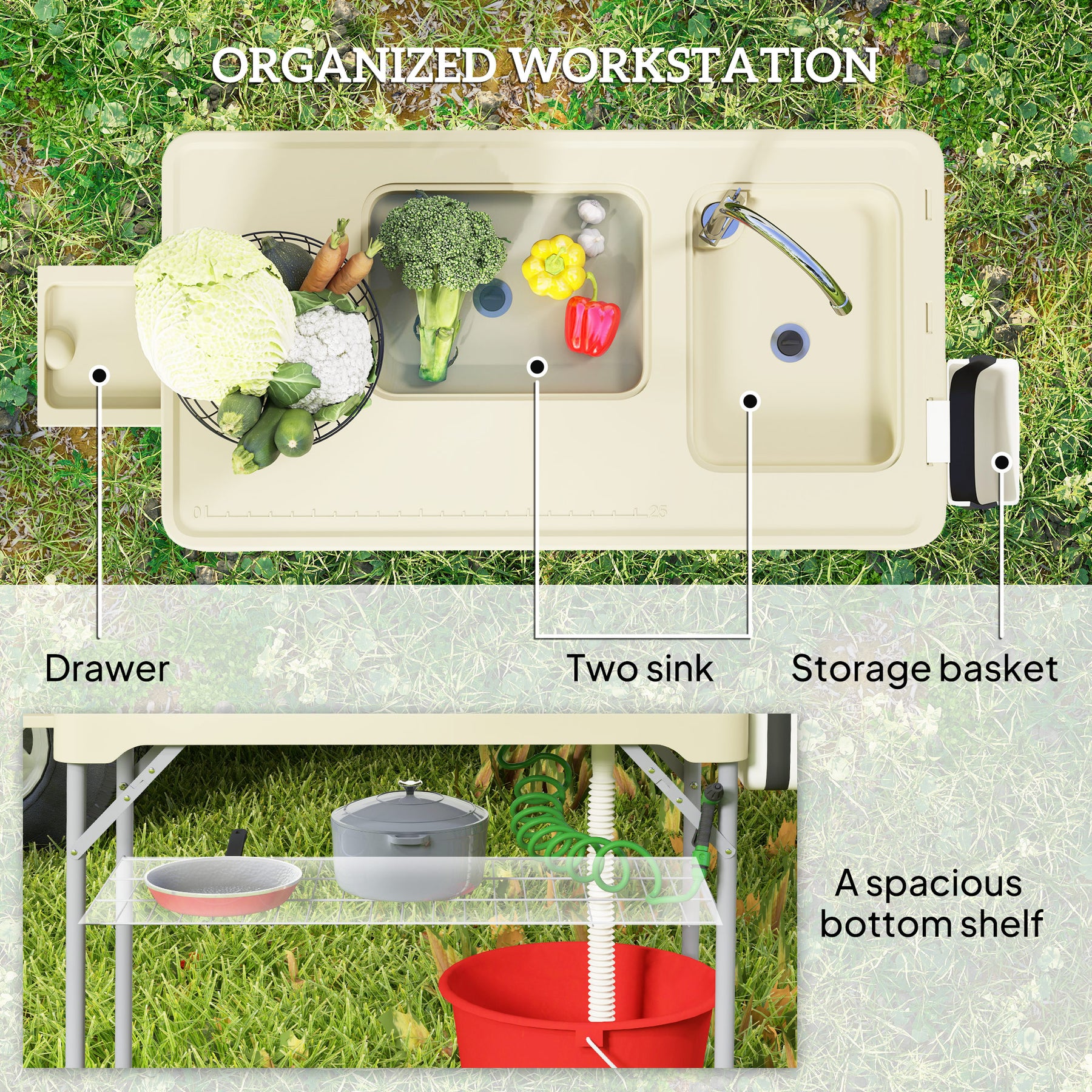 Folding Fish Cleaning Table with Sink & Faucet – Portable Outdoor Fillet Table with Sprayer, Shelf & Storage