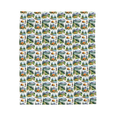 Cozy Camping Scene Velveteen Plush Blanket, Warm Throw for Outdoor Lovers, Travel Blanket, Gift for Nature Lovers