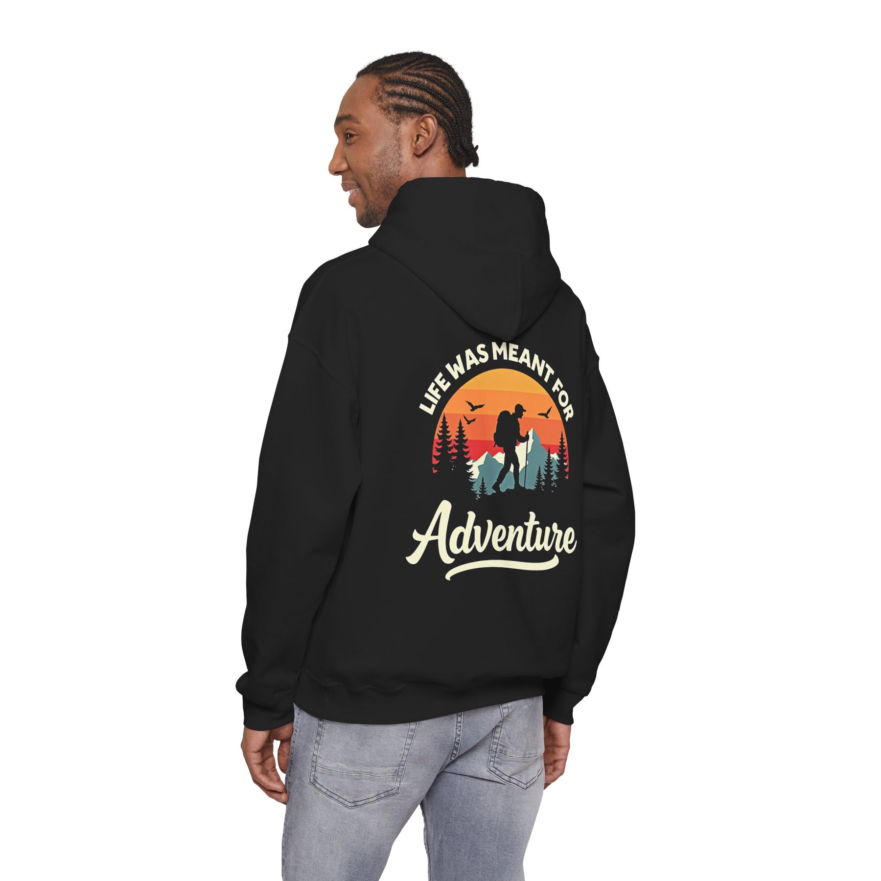 Adventure Hiker Hoodie — Sunset Mountain Backpacking Graphic Hooded Sweatshirt