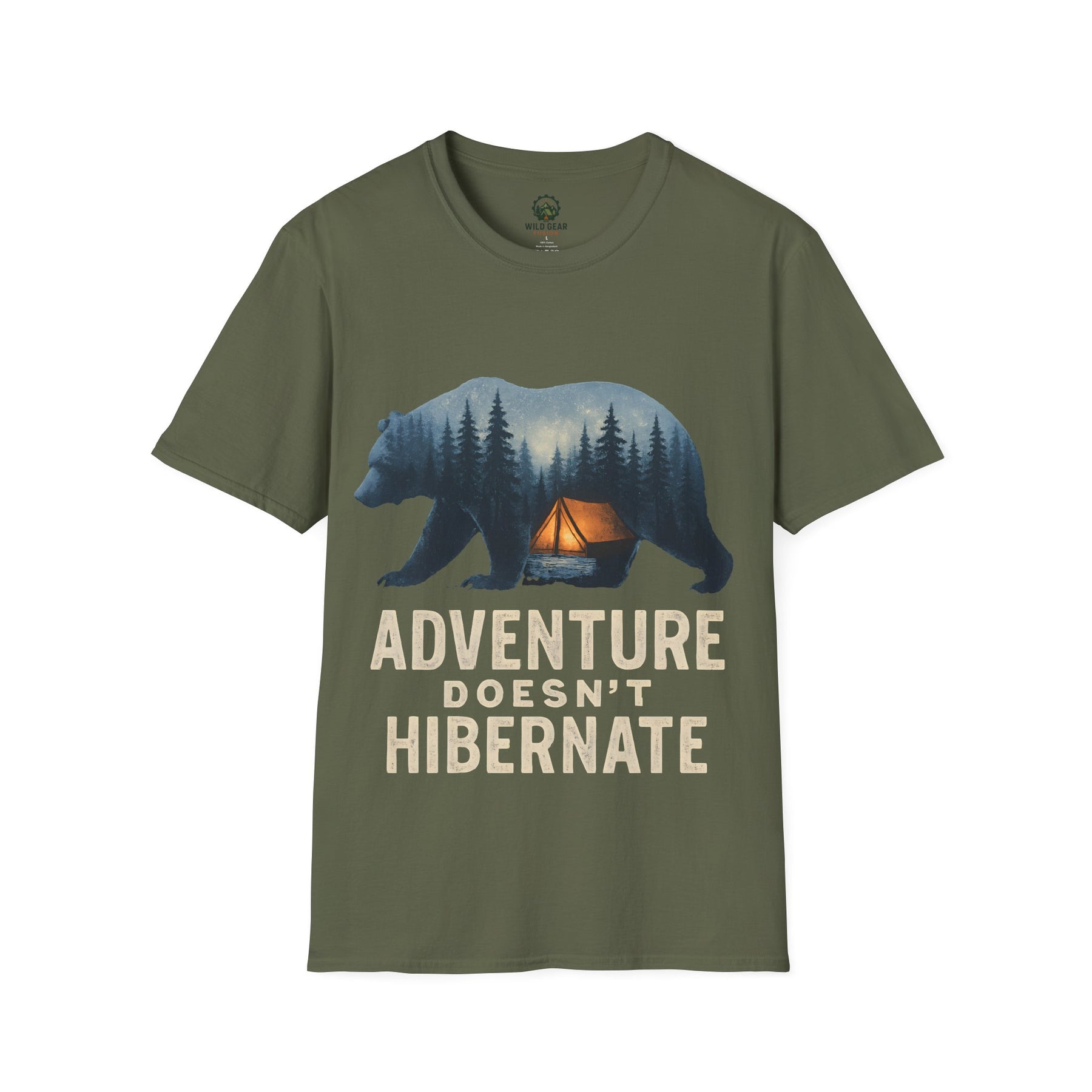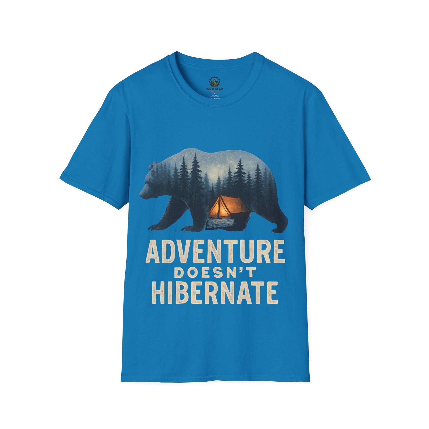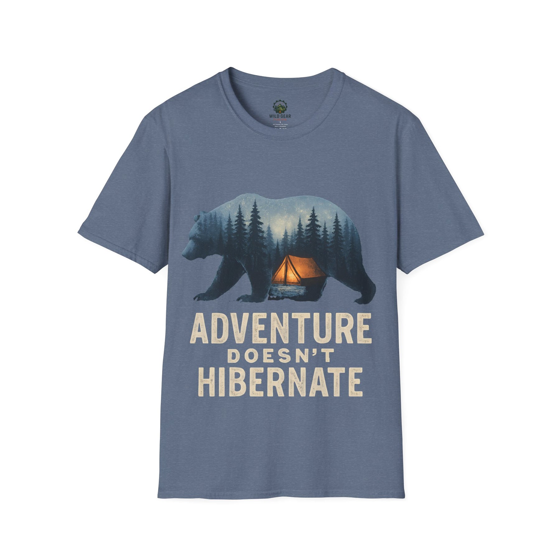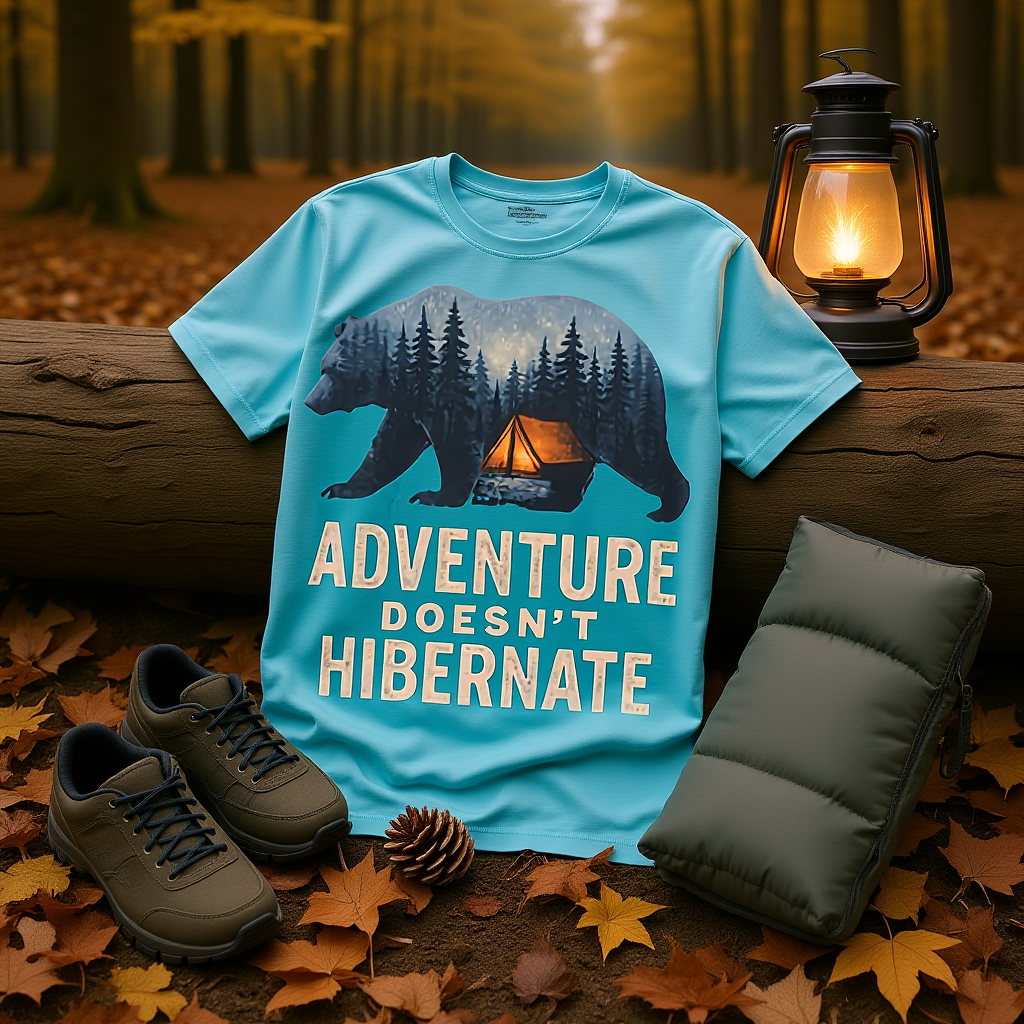Lightweight, soft, and built for people who chase trails as much as sunsets. This crew-neck tee carries a quiet campsite scene inside the silhouette of a bear — pine silhouettes, a glowing tent, and the phrase “Adventure Doesn’t Hibernate.” It feels like a stretch of cold morning air, a slow coffee by the fire, and the kind of quiet confidence that comes from sleeping under the stars. Wear it on weekend road trips, layered under a flannel for night hikes, or at backyard gatherings when conversation drifts to next season’s routes.
