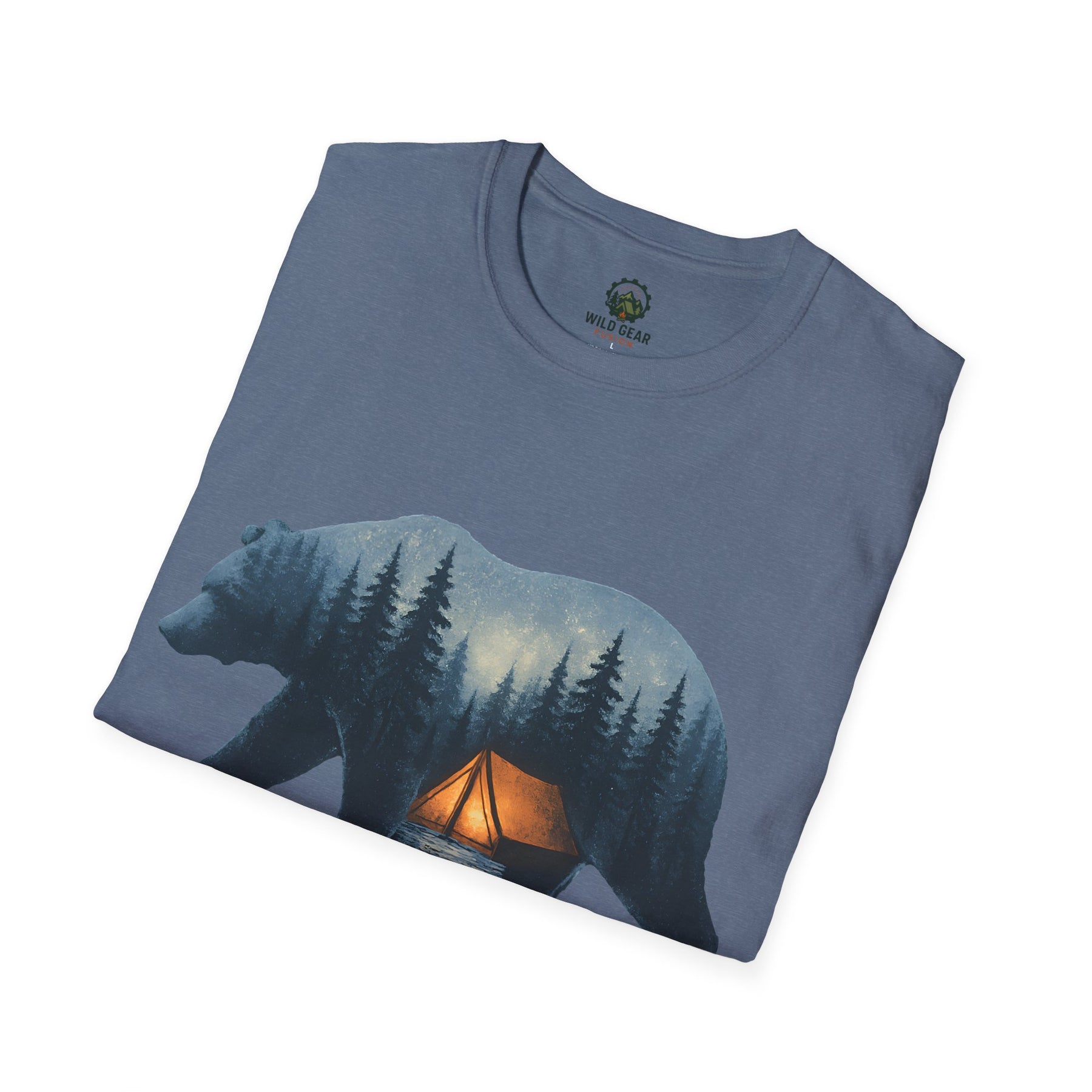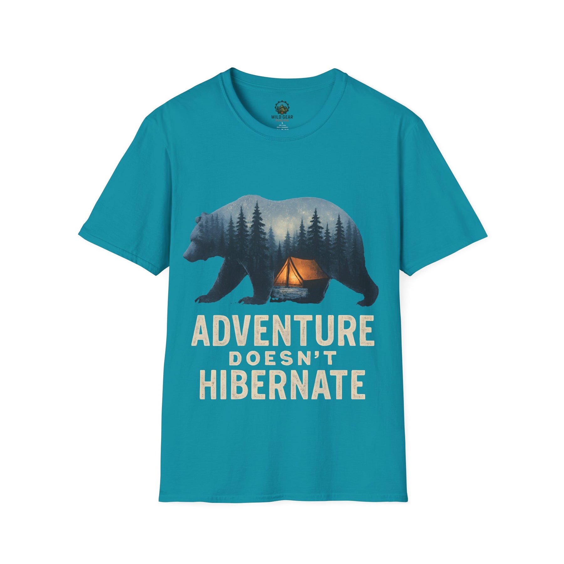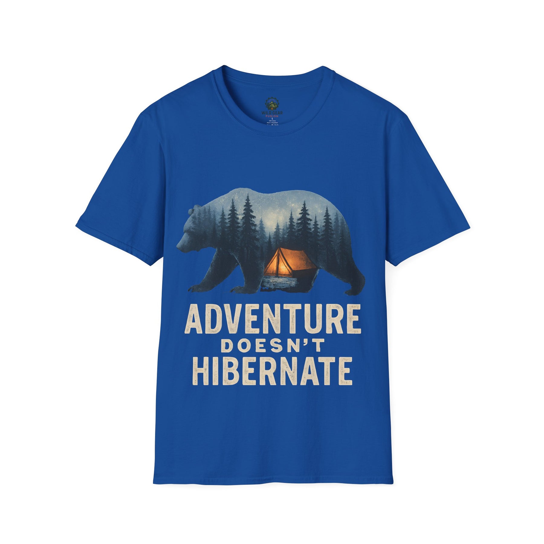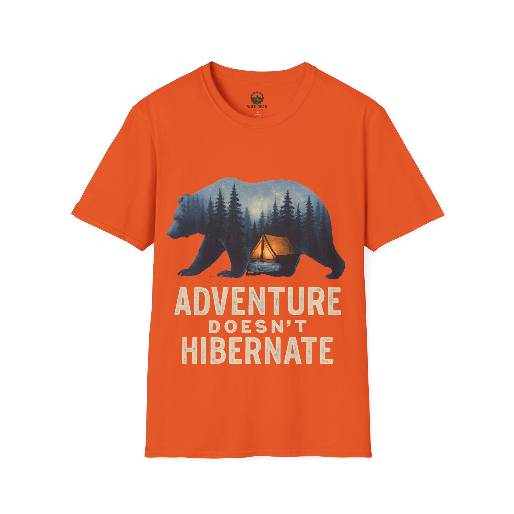 Lightweight, soft, and built for people who chase trails as much as sunsets. This crew-neck tee carries a quiet campsite scene inside the silhouette of a bear — pine silhouettes, a glowing tent, and the phrase “Adventure Doesn’t Hibernate.” It feels like a stretch of cold morning air, a slow coffee by the fire, and the kind of quiet confidence that comes from sleeping under the stars. Wear it on weekend road trips, layered under a flannel for night hikes, or at backyard gatherings when conversation drifts to next season’s routes.