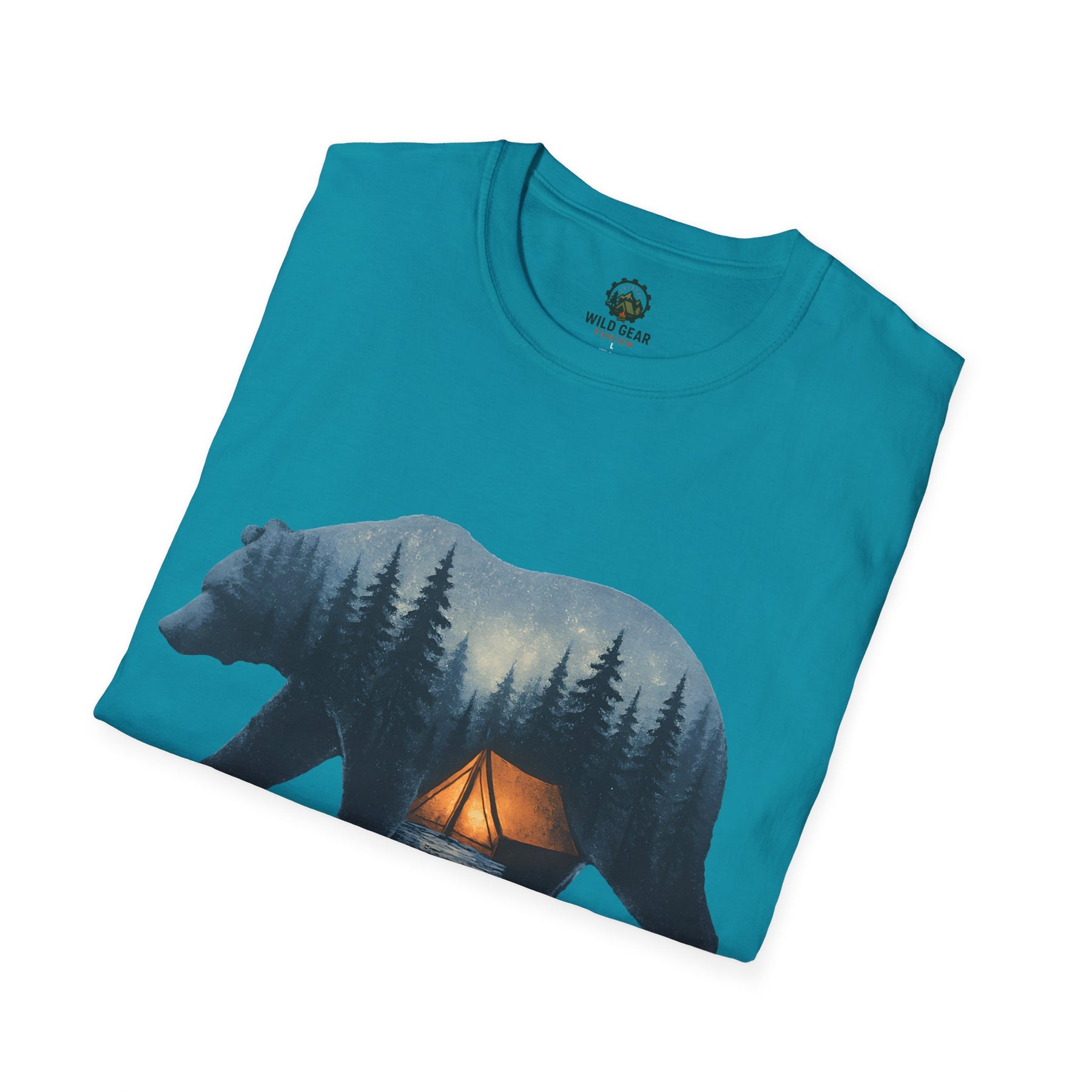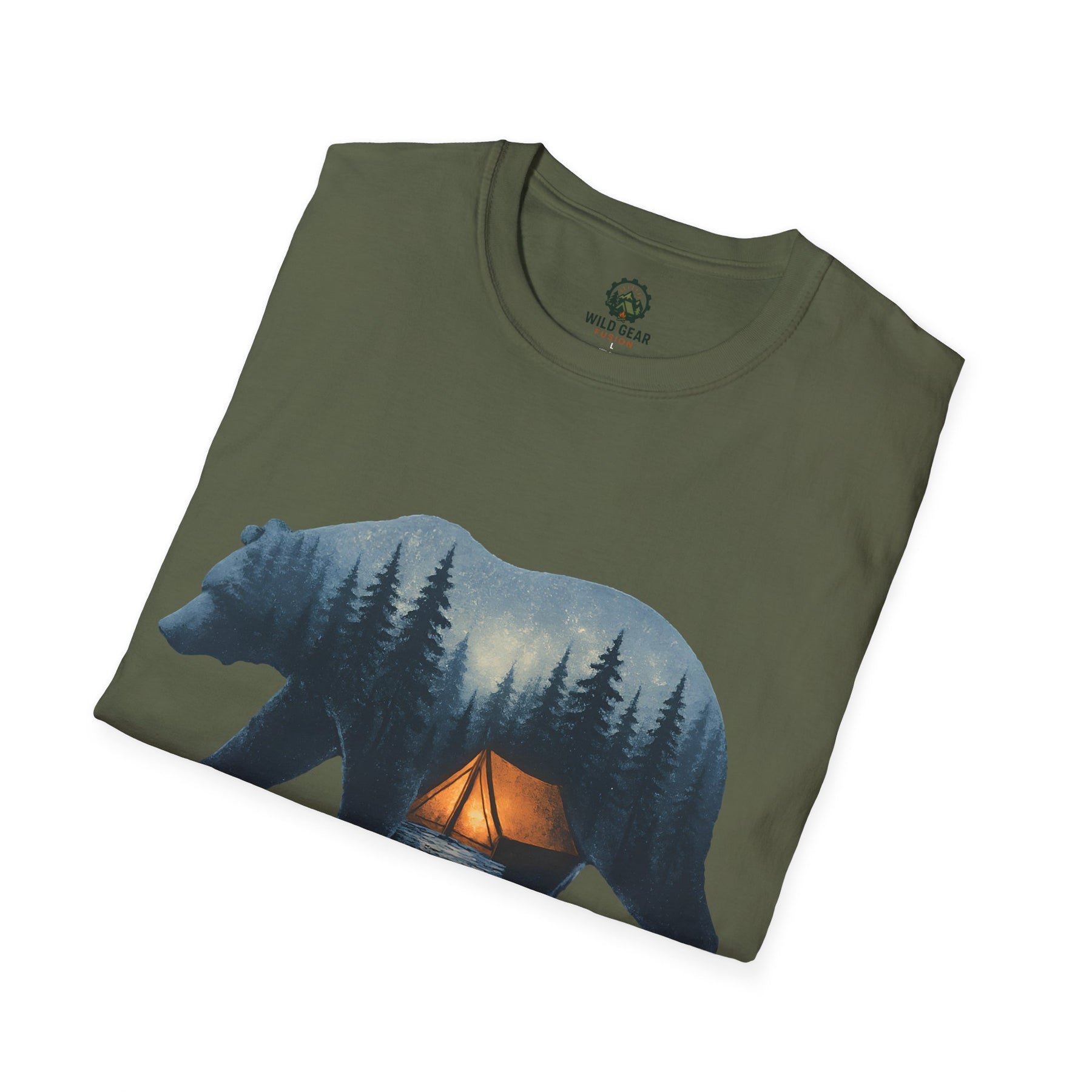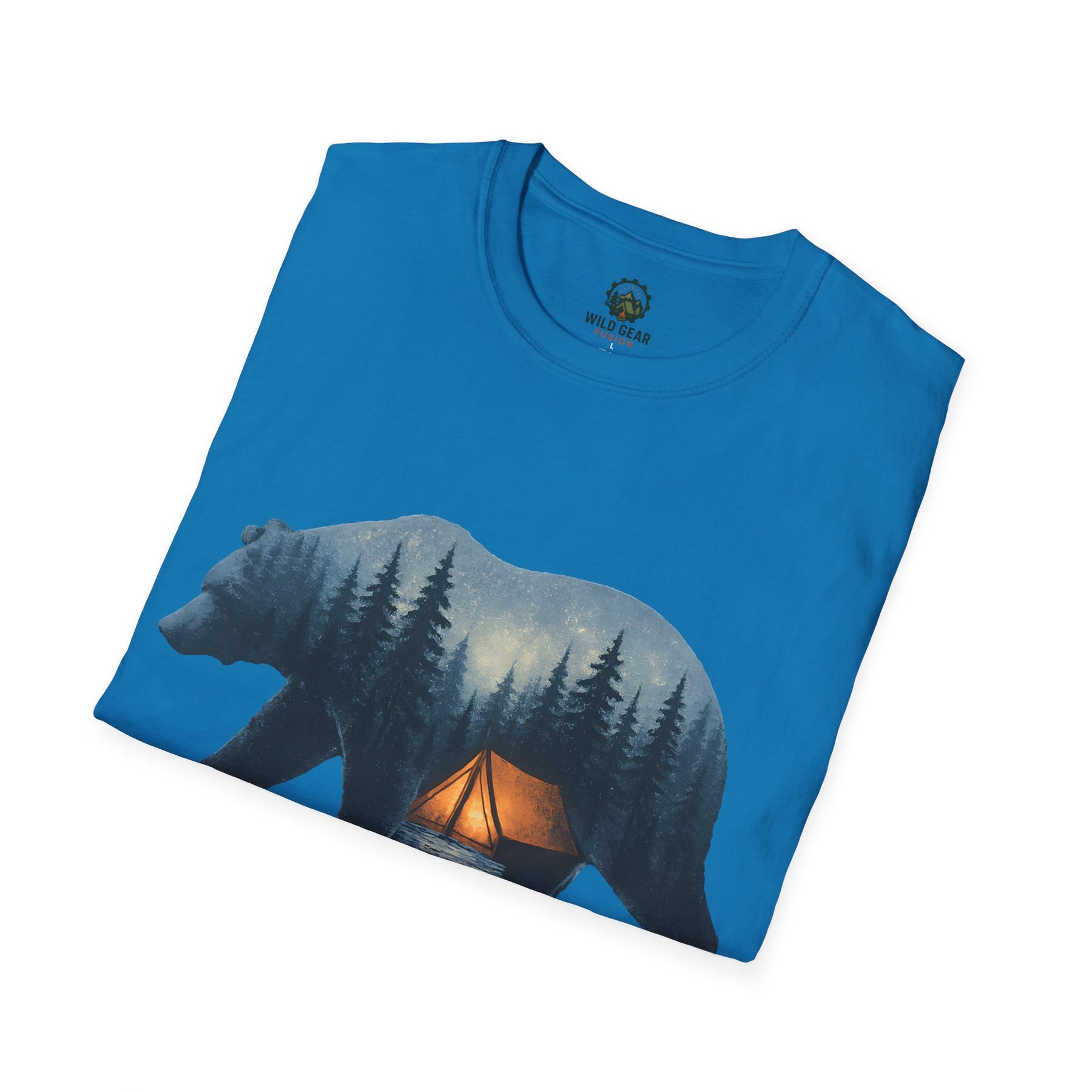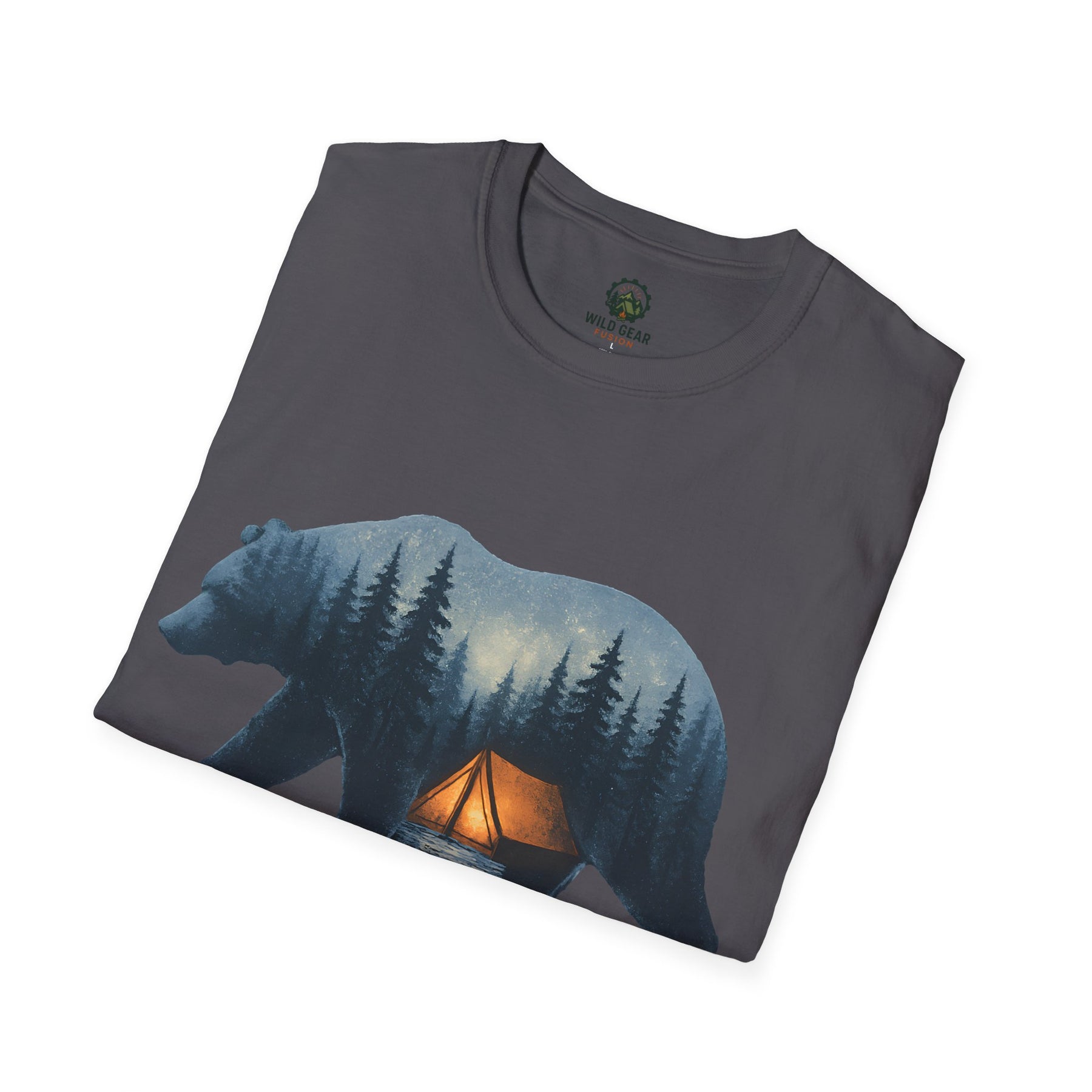 Lightweight, soft, and built for people who chase trails as much as sunsets. This crew-neck tee carries a quiet campsite scene inside the silhouette of a bear — pine silhouettes, a glowing tent, and the phrase “Adventure Doesn’t Hibernate.” It feels like a stretch of cold morning air, a slow coffee by the fire, and the kind of quiet confidence that comes from sleeping under the stars. Wear it on weekend road trips, layered under a flannel for night hikes, or at backyard gatherings when conversation drifts to next season’s routes.