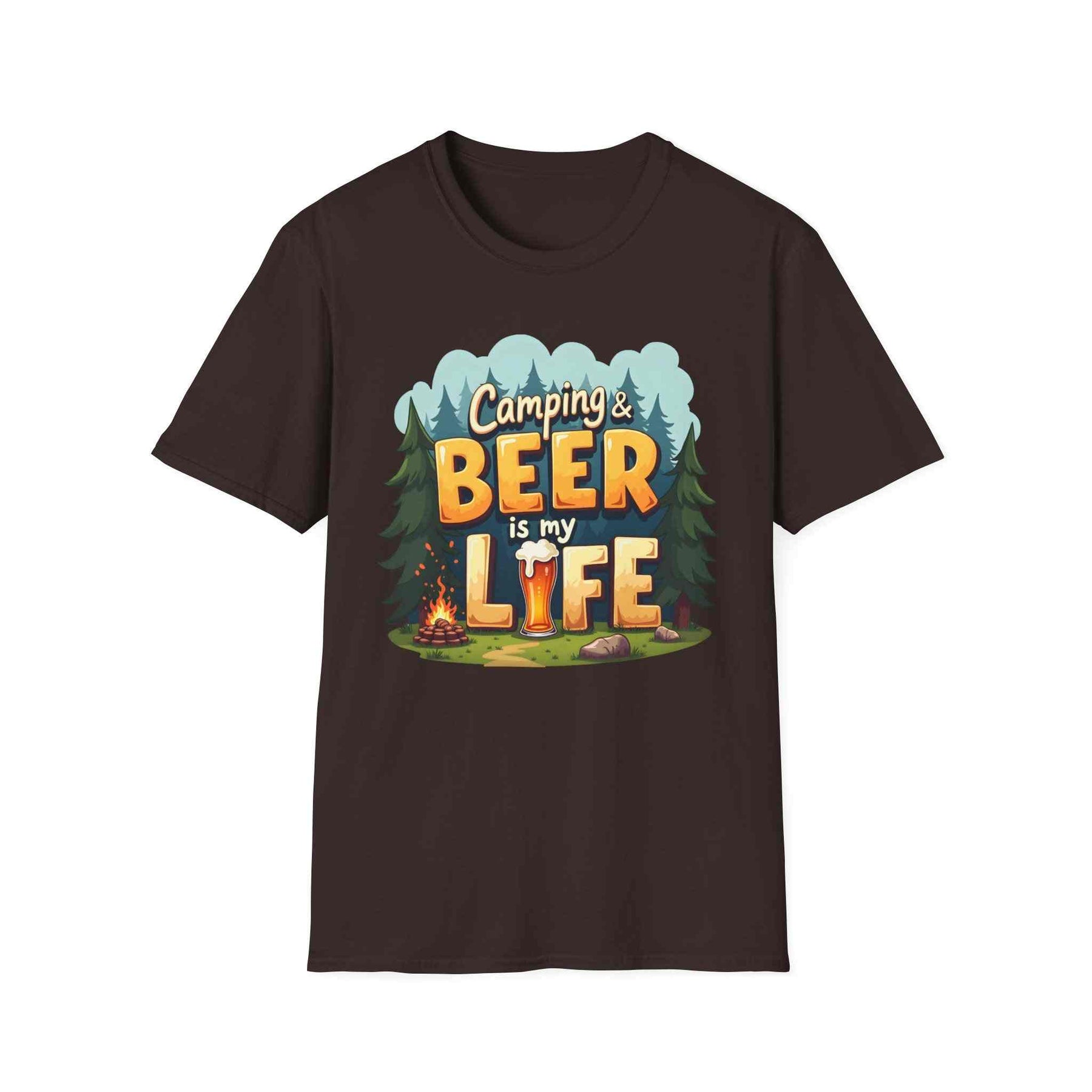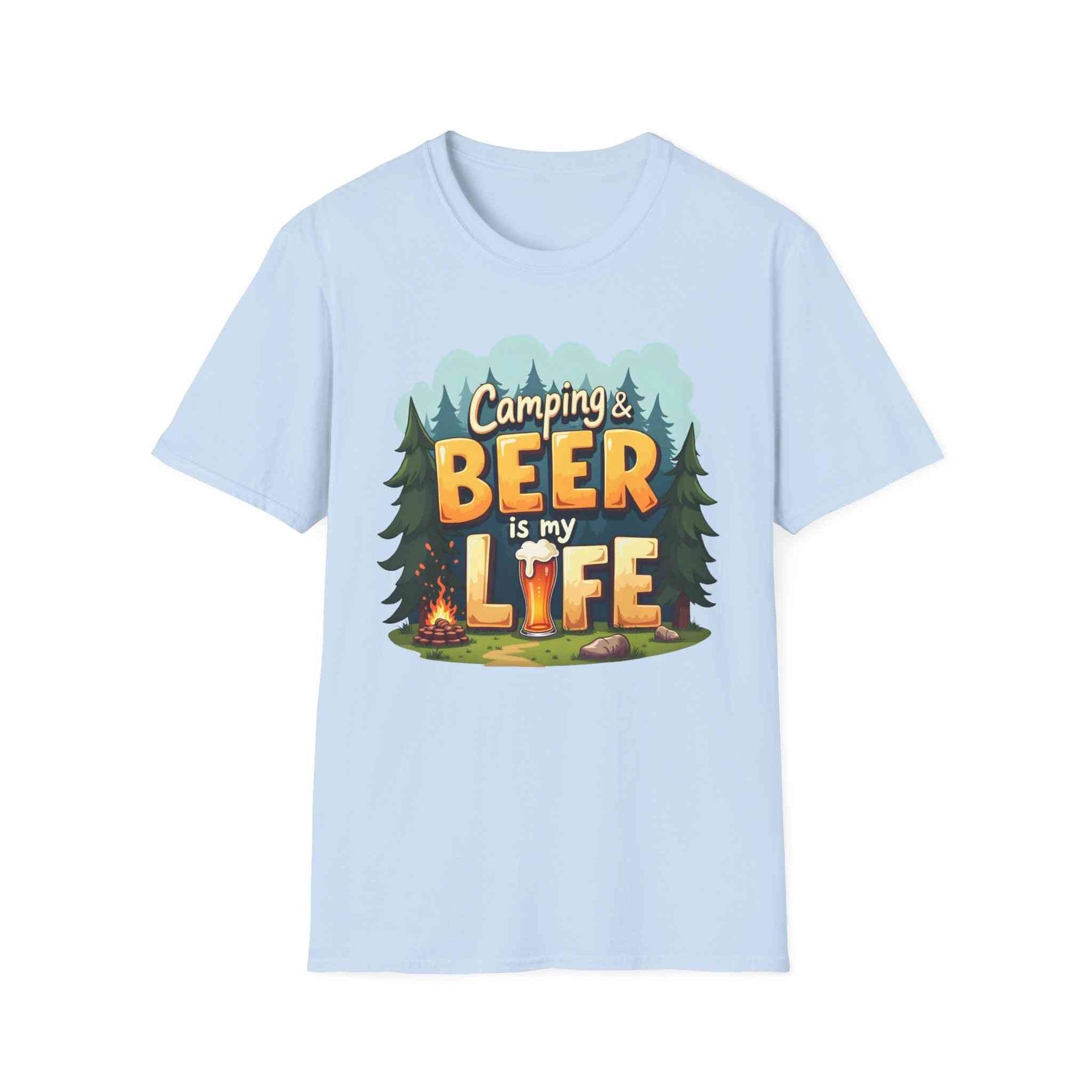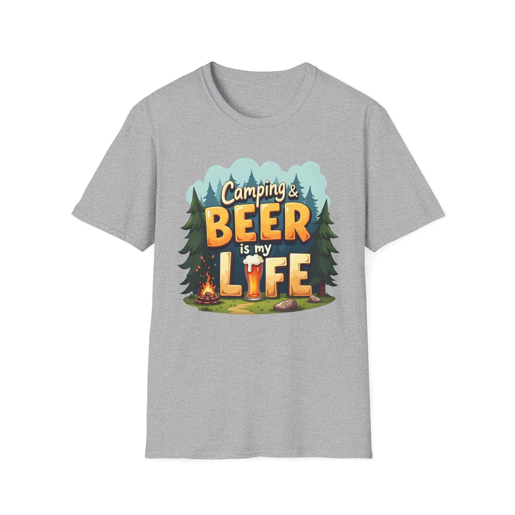 Embrace the great outdoors with this Unisex T-Shirt that embodies the spirit of adventure. Featuring a vibrant design declaring 'Camping & Beer is My Life', this shirt is perfect for nature enthusiasts and those who appreciate a good brew. Lightweight and comfortable, it fits seamlessly into your casual wardrobe, making it ideal for camping trips, bonfire nights, or casual get-togethers with friends. This t-shirt makes a thoughtful gift for fathers, friends, or any outdoor lover in your life. Celebrate occasions like Father's Day, summer barbecues, or simply enjoying the relaxation of nature with friends. Wear it proudly during weekend adventures or as part of your everyday casual look.