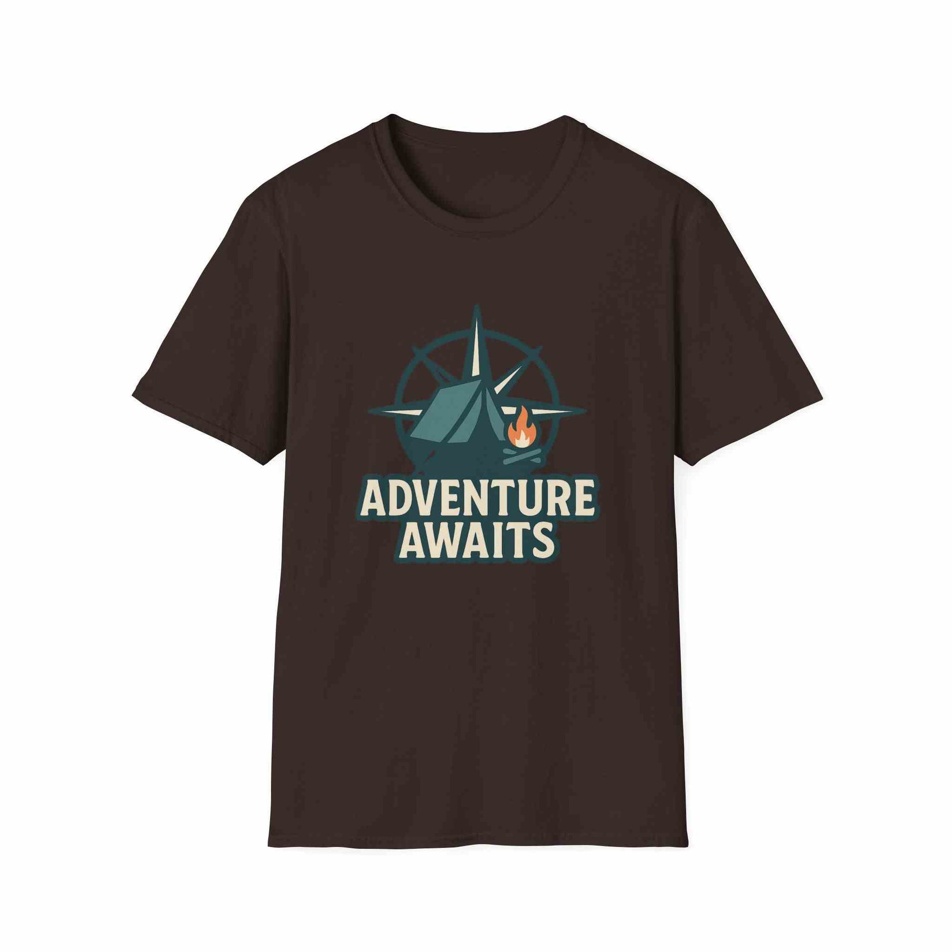 Adventure Awaits Unisex Softstyle T-Shirt, Camping Shirt, Hiking Tee, Outdoor Enthusiast Gift, Adventure Lover Apparel, Travel T-Shirt