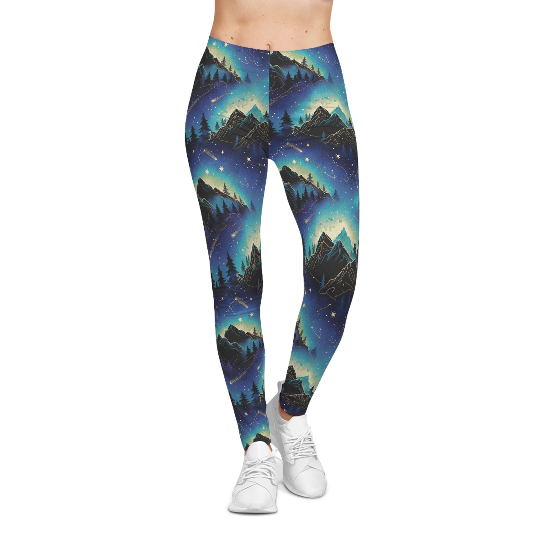 Blue Aurora Mountain Night Women's Leggings — Blue Scenic Yoga Leggings